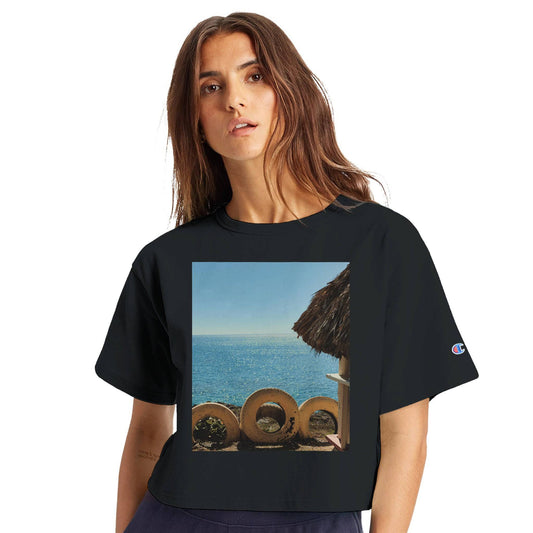 Beach and Tire Women's Cropped Crew Neck T-Shirt Relaxing Caribbean Eco Tops Pixio.Co